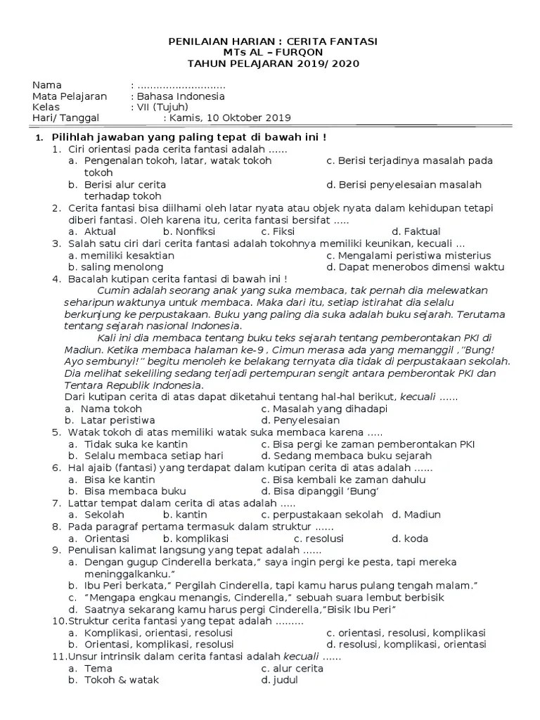 Hasil penelitian secara umum menunjukkan bahwa, kemampuan menulis teks cerita fantasi siswa kelas vii smp. Negeri 14 kota bengkulu memperoleh skor 76,03 dengan . Bahasa indonesia smp kelas vii. Contoh materi teks cerita fantasi berbagai tema meliputi: Buku guru dan buku siswa kelas vii kementerian pendidikan dan kebudayaan,.